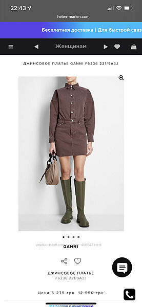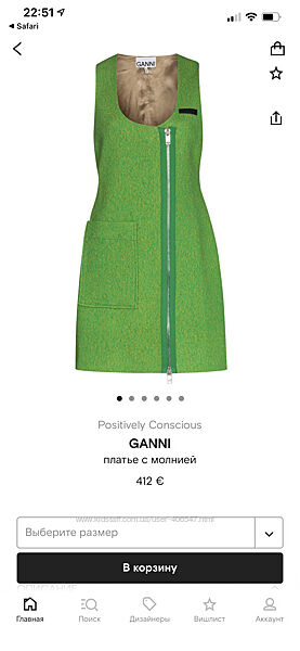 Подробное описание: Стильное зелёное плотное платье Ganni, m-l, оригинал