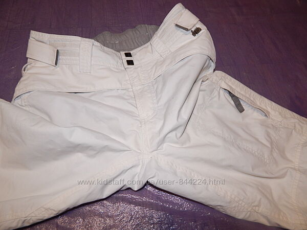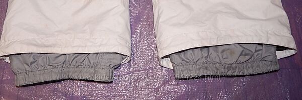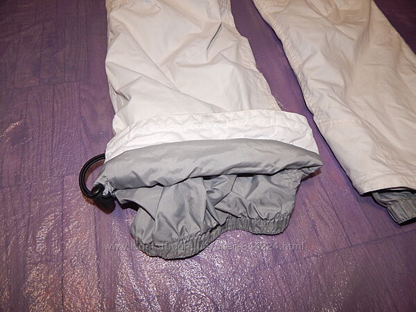 Внизу штанин - снегозащита с резиновым усилением, есть сноубордический крючок