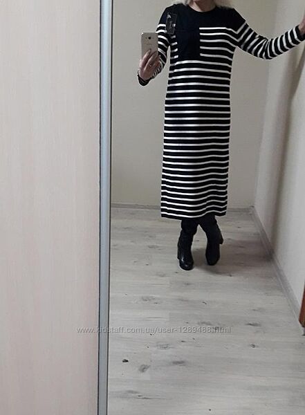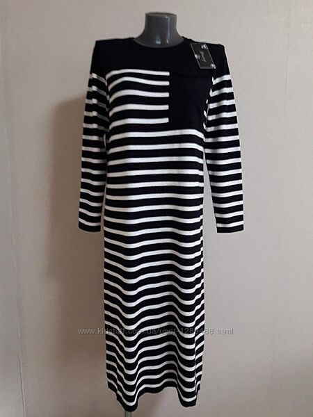 Крутое,трендовое,люкс качества,теплое платье в полоску,A-силуэтаКрасивая,модная в этом сезоне модель платья свободного кроя,A-силуэта,небольшой трапециевидной формы,идеальной длины миди,за колено. Аккуратная практичная,уютная округленная горловина,интересный заметный крой,с одним накладным карманом,в эффектную комбинированную полоску.Модель комфортного кроя,из супер качественной теплой ткани средней плотности,в составе которой есть шерсть и кашемир.