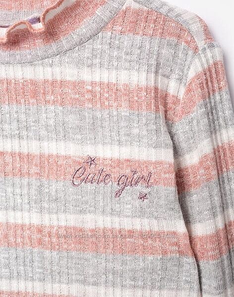 Полосатая водолазка с вышивкой для девочки розовая с серым рост 92