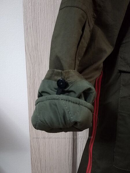 Продам в состоянии новой, стильную парку New Feeling для девочки подростка р.158. Очень практичная, сразу на два сезона: демисезонная на утеплителе (отстегивается на пуговицах) и легкая ветровка на тонкой подкладке. Необычный дизайн, яркие молнии на рукавах оранжевого цвета, по бокам и основная застежка, плюс много карманов)Состав: 65% хлопок и 35% полиэстер.