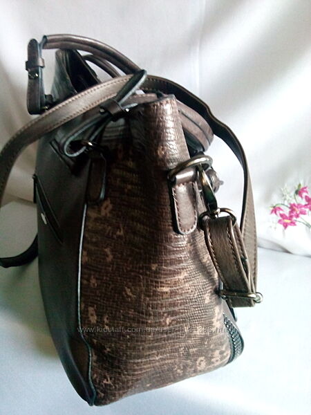 Продам нову ( сток з Англії ) сумку фірми Bessie London - оригінал без паперових бірок з іголочкою , а також впереді на одній ручці з права на фото де зачеплений брілок не знятий кусочок салафану. Сумка дуже вмістима., зроблена з добротної європейської еко - шкіри. Колір коричневий мрамор, а по по бокам мрамор під рептилію. Сумка має всередині два основних відділення і по середині між ними ще одне відділення , яке защипається на замочок. Всередині має три карманчика, одне з яких защипається на замочок для дрібниць. Також зовні ззаді є карманчик, який теж защипається на замочок. Защипається сумка на замочок, а зверху ще на хлястик з магнітом. Зовні впереді по обоїх боках є два кармани - обманки на добротних желізних замках вздовж сумки . Сумка має дві ручки , які можна носити в руках, на руці і на плечі, а також є ще велика ручка - пояс., яка прищипається на карабіни. Всередині підкладка - атласна , на якій вибитий бренд сумки. Бренд сумки є також впереді на хлястику сумки, на карабінах, на хлястику на ручці, на закльопках, всередині на маленькому карманчику , який защипається на замочок. Якість бренду на висоті. Бренд цих сумок не є з дешевих . Покупкою залишитися задоволені . Заміри - висота - 24, 5 см., ширина уверху - 36 см., ширина по середині - 42 см., ширина дна - 15 см., висота сумки з ручками - 54 см., довжина ручок коротких - 65 см., довжина ручки - пояс - 1 м 15 см Заміри зроблені зовні , можлива похибка + /- 1 см. БЕЗ торгу, обміну, повернення.Пересилаю УП і Новою поштою на мою приват карточку після повної вашої оплати за ваш рахунок. Дивіться будь ласка мої інші оголошення.