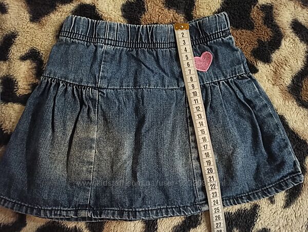 Джинсові спіднички на дівчинку орієнтовно 3 рочки. По бірках 2 роки, моя дитина худорлява, носила в садок в 3-3,5 роки.Заміри показала на фото.