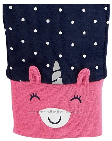 Комплект Carter`s р.9-12M для девочки. В комплект входит 2 бодика разной расцветки из мягкого трикотажного полотна и трикотажные весёлые лосины.Замеры: