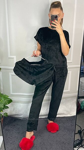 Другую одежду для дома и сна, Вы можете посмотреть по ссылке: https://www.kidstaff.com.ua/user-anno-1997582/sect...Комплект трійка з плюшевого велюру. У набір входить: Шорти, Штани, Футболка.