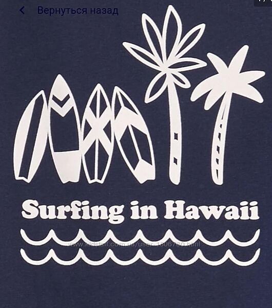 Майка: колір темно-синій. Круглий виріз, без рукавів, з принтом серфінгу. Склад 100% бавовна