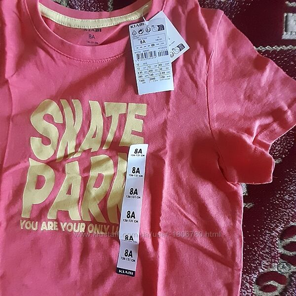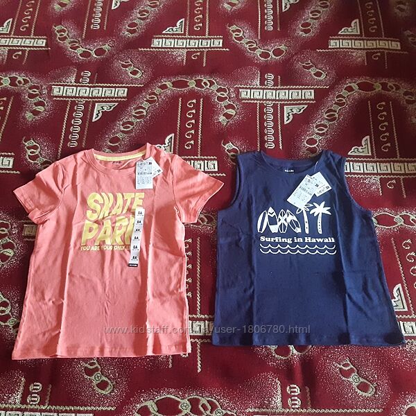 Футболка, майка фірми Kiabi (Португалія), розмір 8А (126-131), на наш 122, маломірять. Кожна річ по 230 грн.Футболка: прямий/стандартний крій, круглий виріз, короткі рукави. Склад 100% бавовна