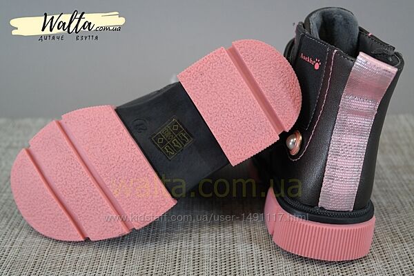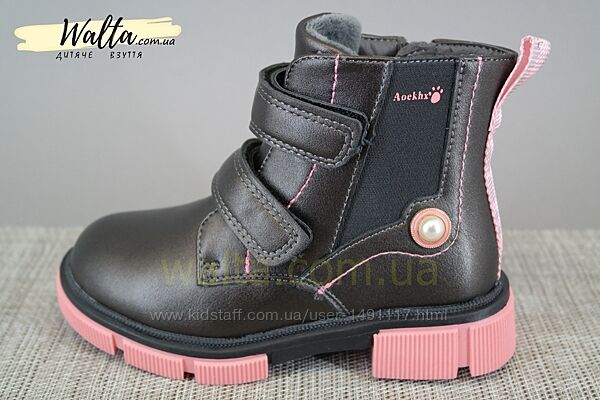 Фирма Флип (Том.м). Стильные демисезонные ботинки для девочки темно серые с розовой подошвой. В середине плюш мягкий (утепление). Стелька кожа+супинатор. На замочке сбоку. На двух липучках. Изначально присутствует фабричный запах обуви, в процессе носки выветривается.