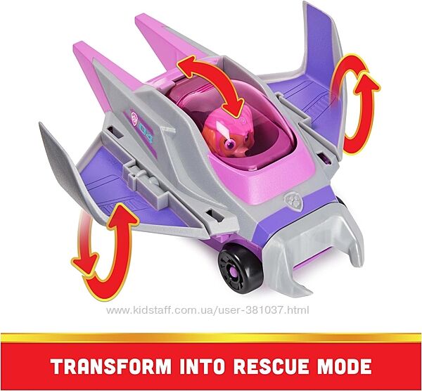 Объединитесь со Скай и выполняйте насыщенные спасательные миссии на ее спасательной машине Aqua Pups — Manta Ray! Одетая в розовый гидрокостюм и шлем Aqua Pups, Скай готова к экстренным спасательным операциям в воображаемом море! Транспортное средство Скай-Манта-Скат демонстрирует захватывающую трансформацию!Просто поместите Скай в кабину автомобиля и закройте фонарь, чтобы активировать переворот крыла и звуковой сигнал, переводя ее автомобиль в режим спасения! Если возникнет проблема, быстро переключитесь в режим спасения, а затем спешите на помощь! Создавайте захватывающие приключения со спасательной машиной Скай-манта!