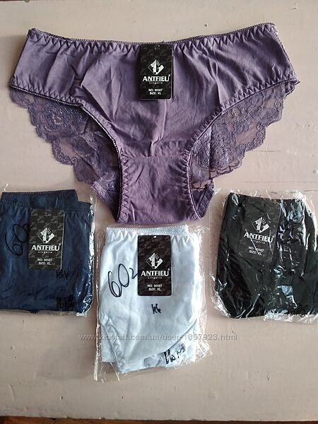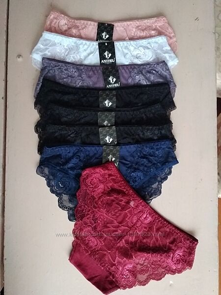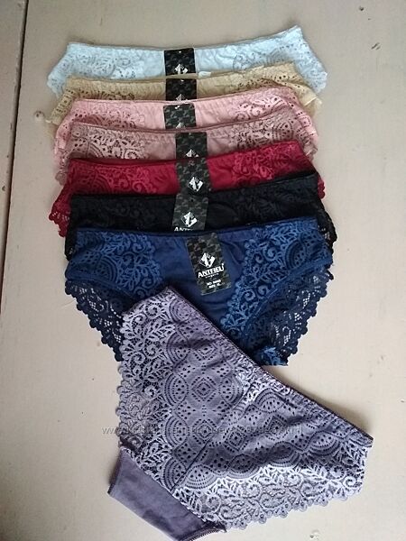 Трусики бавовна з кружевними вставками спереду та повністю кружевним задом. Хороша якість, середня посадка.В наявності 2 моделі.
