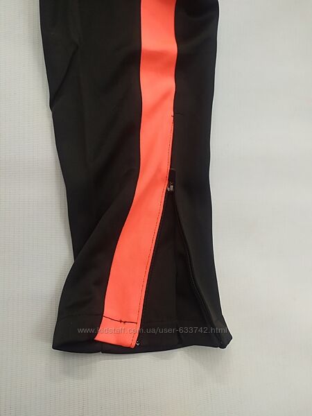 Изготовлен из высококачественного полиэстера. Предназначен для занятий спортом и просто для повседневного использования. Фасон кофты прямой, застегивается при помощи короткой молнии(от подбородка до груди). Манжеты на рукавах обработаны тесьмой, также в них проделаны отверстия для больших пальцев. Анатомический крой брюк позволяет себя чувствовать комфортно и свободно. Книзу брюки заужены и слегка облегают голень, при помощи молнии манжет можно сделать шире. По бокам с обеих сторон есть карманы(без замков).