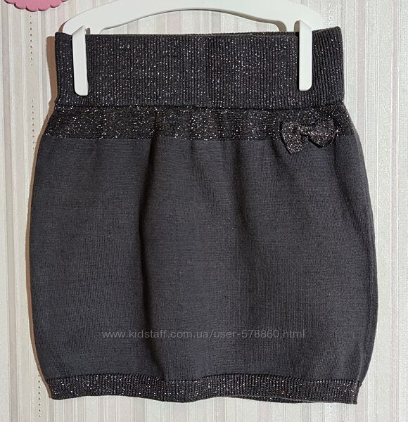 Сіра в´язана тонка спідниця від Frendz з блискіткою та бантиком у розмірі 110.Стан відмінний.