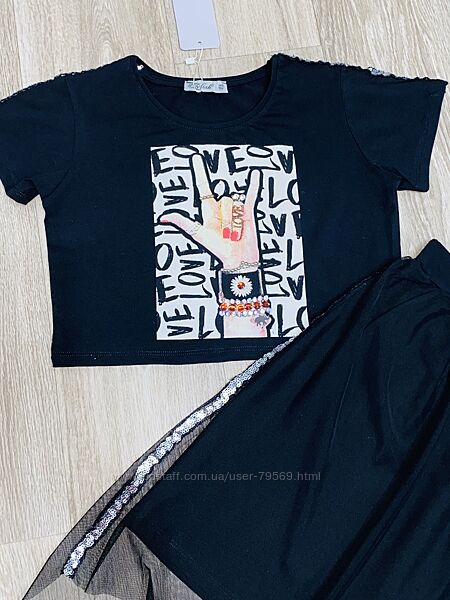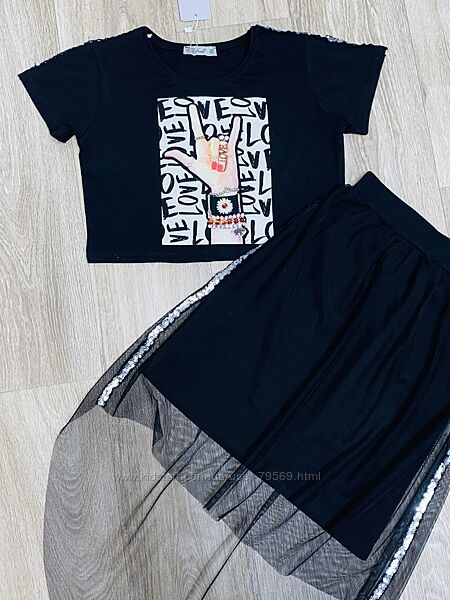 Подробное описание: Фирменный крутой костюм юбка с фатином и кроп топ 134-170 рост