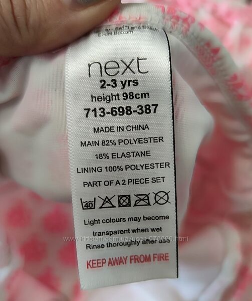 Коралово-білий купальник – танкіні від Next у розмірі 2-3 роки.100% поліестер.