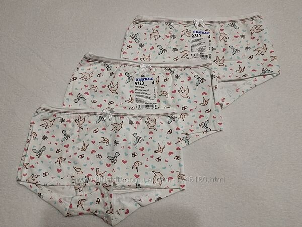 Трусики шорты для девочек фирмы Baykarразмер 3: 5-6 лет, рост 122-128 см, Замеры: полуокружность по верху резинки 21 см, ПОБ 25 см, высота трусиков 17 см