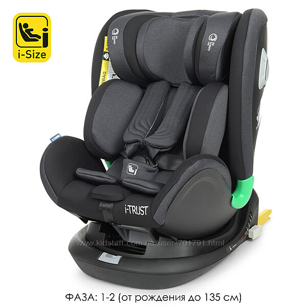 I-TRUST - это автокресло новейшего стандарта безопасности i-SIZE. Автокресло рассчитано на ребенка с рождения и ростом до 135 см (фаза