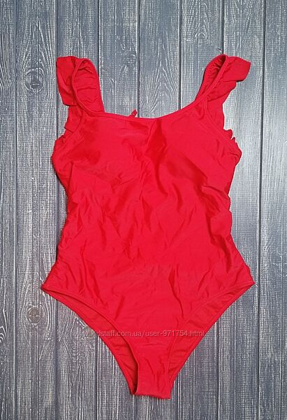 Слитный красный купальник с рюшами от shekini