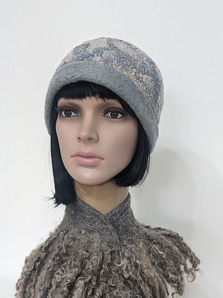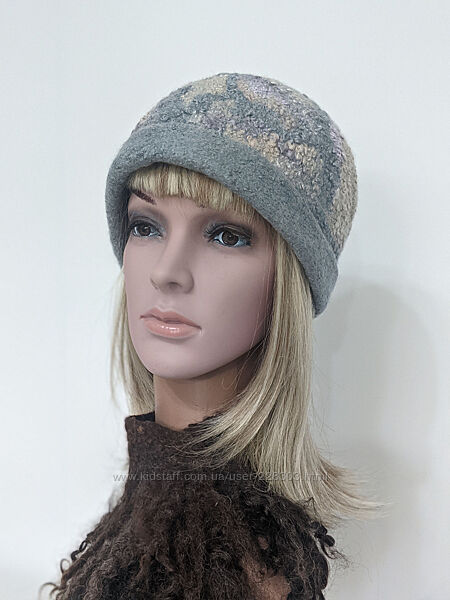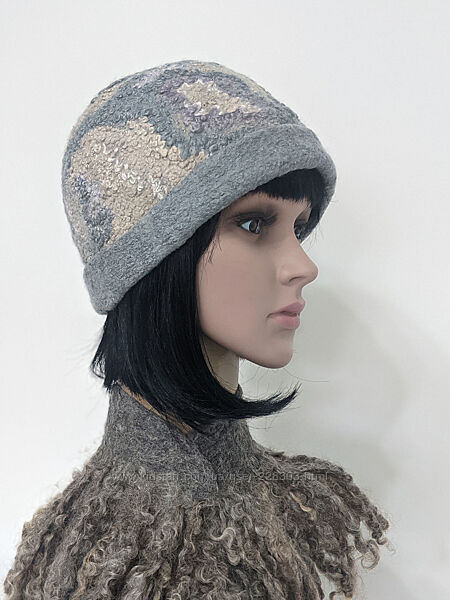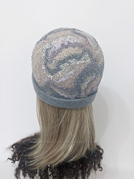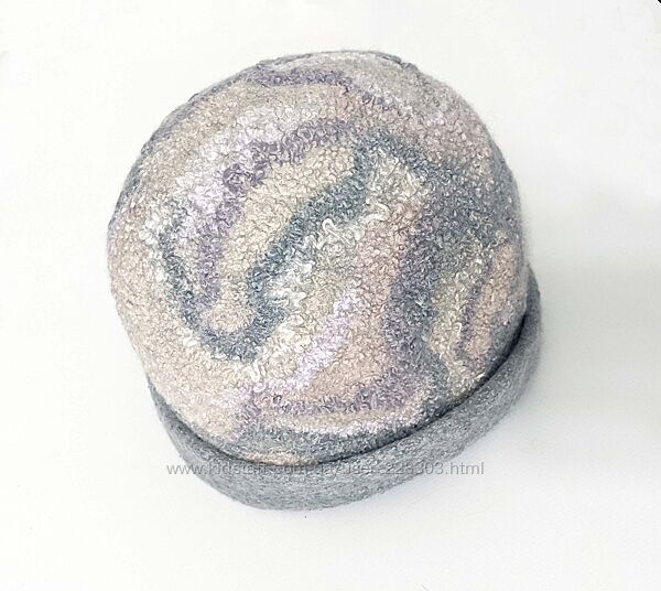 Валяна шапочка виконана в техніці мокре валяння з мериносової вовни (Італія).