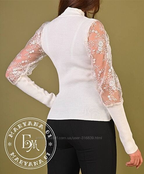 ❤ НАРЯДНЫЙ ГОЛЬФИК С АЖУРНЫМИ РУКАВАМИ ❤НОВИНКА! Шикарный белый гольфик с ажурными рукавами. Отличное качество, мягкий, нежный и безумно красивый. Приятный к телу акриловый трикотаж в рубчик. Горловина стойка. Материал отлично тянеться и хорошо садится по фигуре. Прозрачные рукава-фонарики декорированы красивой ажурной вышивкой. Красивая, нарядная модель, выглядит очень изысканно.
