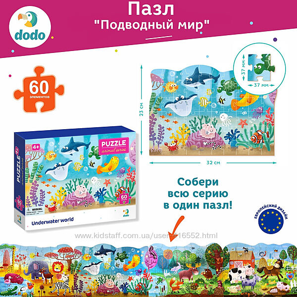 Популярный украинский производитель “Dodo” не перестает радовать детишек своими яркими пазлами с захватывающими сюжетами.Собирая пазл малыш параллельно сможет придумывать захватывающие сюжеты, где главными героями станут персонажи изображенные на картинке.