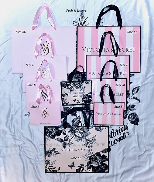 В наявності є 4 розміру паперових пакетиків Victoria´s Secret. Розміри і ціна пакетиків: 🛍 S 19 × 15 × 9 см - 50 грн. 🛍 М 24 × 20 × 10 см - 70 грн. 🛍 L 28 x 23 x 12 см - 80 грн. 🛍 XL 41 x 30 x 15 см - 150 грн.