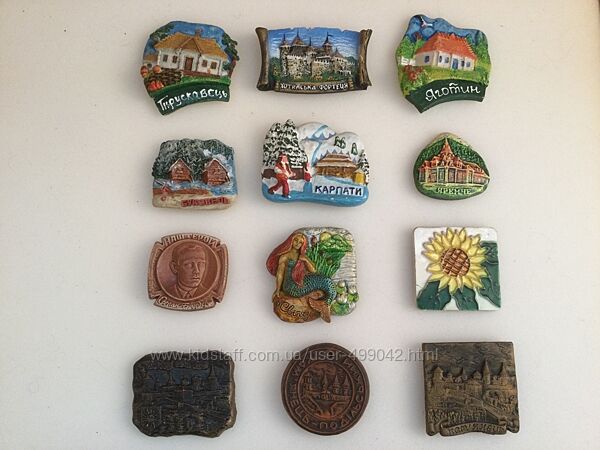 Магниты на холодильник из разных городов Украины от 15 гривен. Сам качественно упакую и отправлю, при определённых условиях возможна недорогая доставка. Много других тарелок, магнитов Украины в моих объявлениях или по запросу.Также в наличии сотни недорогих сувениров со всего мира, пишите, пришлю фото.