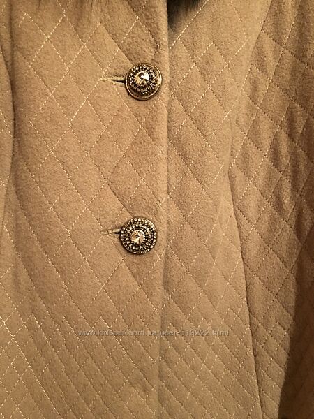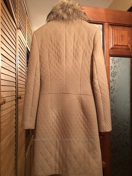 Пальто Balizza Довольно тёплое, не на зиму, но на раннюю весну подойдёт Воротник- мех Енот Длина до колена Бежевого цвета Есть нюанс с одной пуговицей , нет ряда камушек.