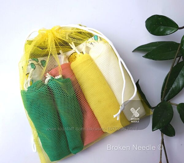 Эко мешочки-сеточки, набор эко мешочков лимон, многоразовые эко пакеты