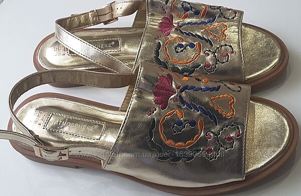 Atmosphere, нові золотисті босоніжки, розмір 38, UK 5, EUR 7, Велика Британія зі штучної м´якої шкіри з оригінальною вишивкою. Довжина устілки – 25 см.Предложения от магазина