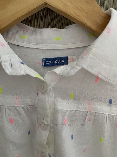 Блузка Cool Club. Бирка с составом срезана, коттон. Размер 116. Состояния нового, без нюансов. Замеры: длина 41 см, ПОГ 34 см, плечи 25 см, рукав по верхнему шву 40,5 см, по нижнему - 35 смДругие объявления продавца