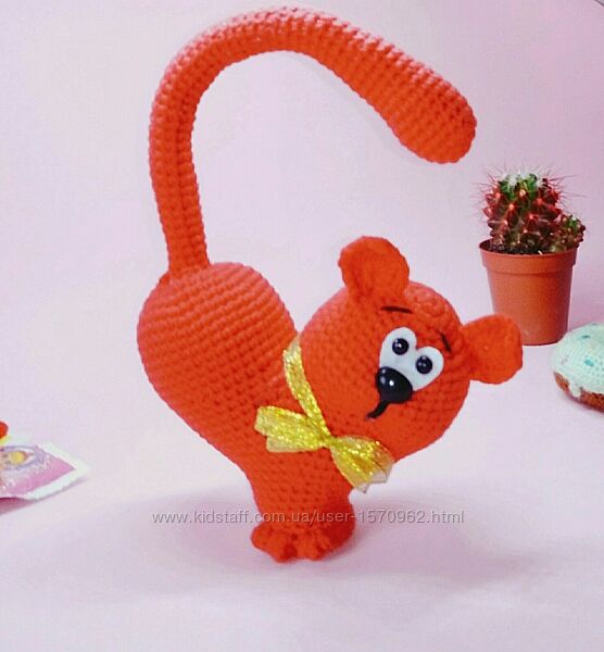 Котик ручной работы вязаный крючком, выполнен из пряжи YarnArt JEANS (55% Хлопок, 45% Полиакрил). Наполнитель - холлофайбер, внутри проволочный каркас. Размер до 20 см.Порадуйте себя и своих близких приятным подарком.