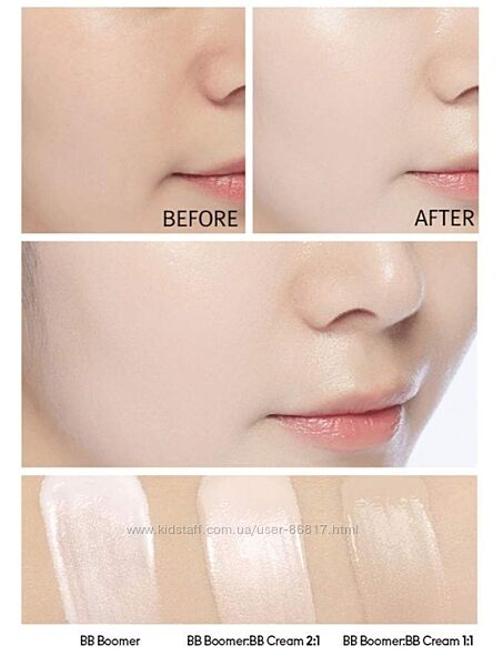 ✅MISSHA M B.B.Boomer має легку текстуру, добре покриває шкіру і робить її свіжою, світлою, м´якою та гладкою, дарує природне сяйво шкірі та помітно приховує шкірні недосконалості – розширені пори, пігментні плями та ін.