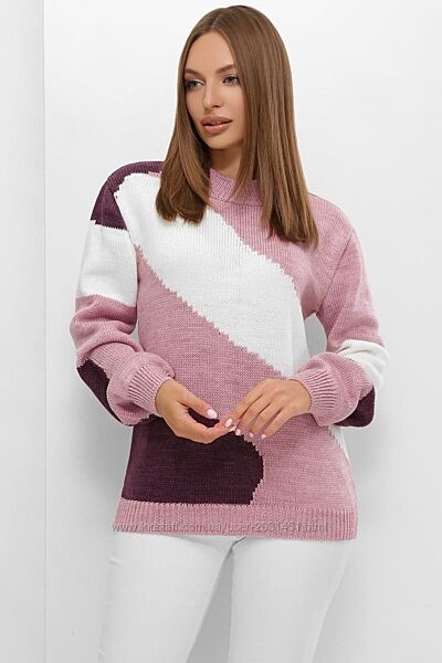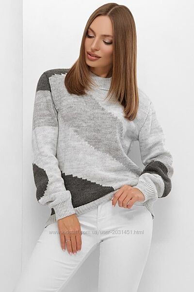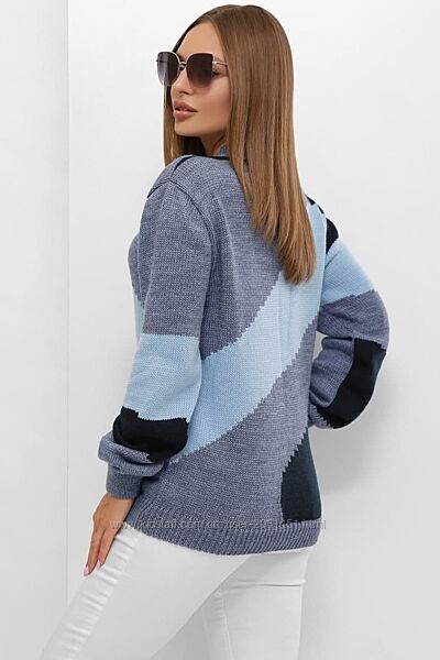 Подробное описание: Свитер женский вязаный теплый, трехцветный, шерстяной, 44-50