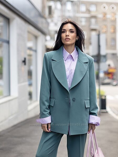 Элегантный классический костюм свободного кроя - идеальный выбор для создания street style образов, для офиса и деловой встречи, а также для торжественных и праздничных мероприятий.