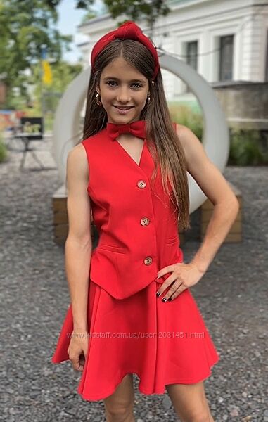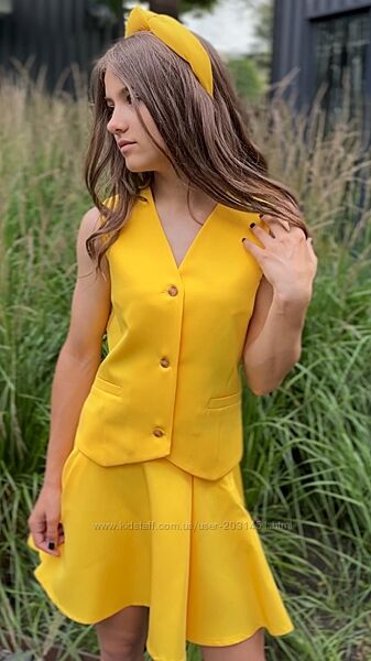 Костюм - двойка детский подростковый школьный, жилетка, юбка - солнце