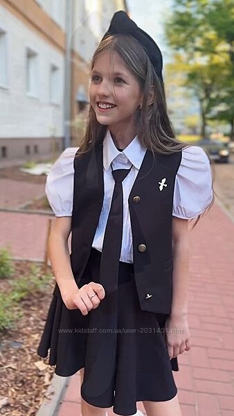 Подробное описание: Костюм - двойка детский подростковый школьный, жилетка, юбка - солнце
