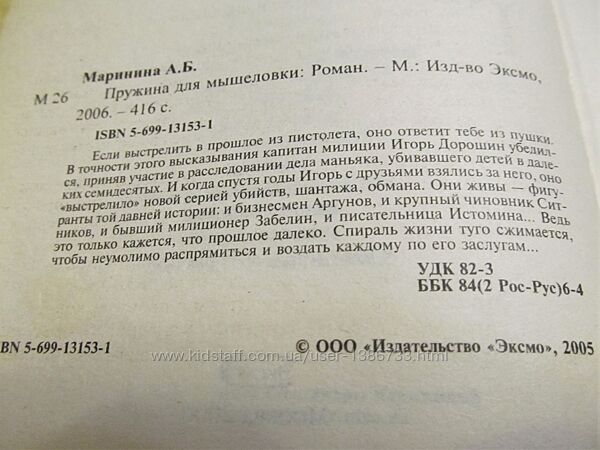 Подробное описание: Александра Маринина. Роман детектив Пружина для мышеловки