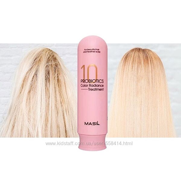 Бальзам із пробіотиками для захисту кольору Masil 10 Probiotics Color Radiance Treatment:- Дарує волоссю здоровий блиск, гладкість і шовковистість, робить його слухнянішим і полегшує процедуру розчісування.