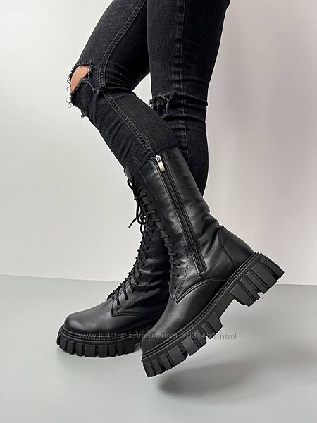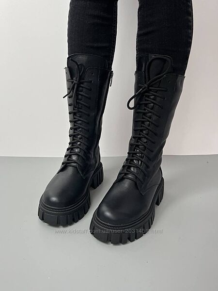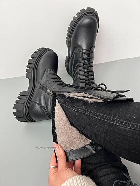 Подробное описание: Ботинки женские, кожаные, натуральная кожа, натуральный мех, черные высокие