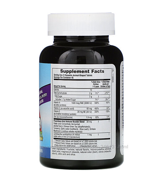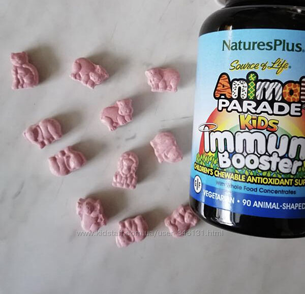 Nature´s Plus, Source of Life, Animal Parade, укрепление детского иммунитета, вкус натуральных тропических ягод, 90 животныхЖевательные таблетки для укрепления детского иммунитета от Animal Parade богаты укрепляющими иммунитет витаминами A, C и E, а также полезным для детского здоровья цинком.