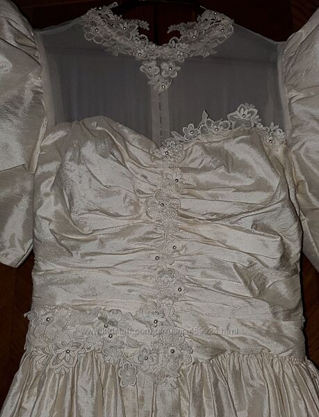 Винтажное шёлковое свадебное бальное выпускное, для фотосессии платье цвета айвори р. ХС-С. На фото рост 160см 83-64-83. Платье без бирок, но это точно винтаж 80-х, ткань шёлк чесуча её ни с чем не спутать, качество классное, цвет слоновой кости, стоит атласный подъюбник, сзади платье чуть длиннее примерно на 15 см., очень интересно сделан рукав, по бокам в корсете стоят косточки. Есть дополнительные фото, по запросу. Состояние очень хорошее, дефектов нет. Замеры по запросу. Возврат не предусмотрен.Другие объявления продавца