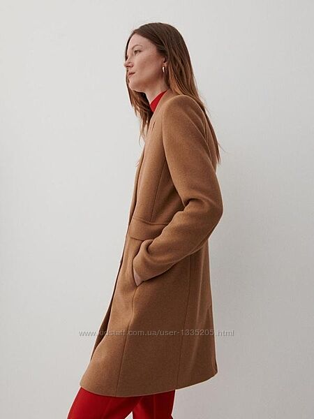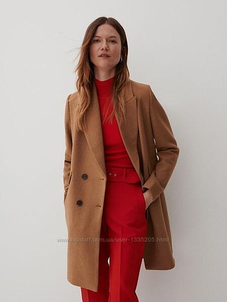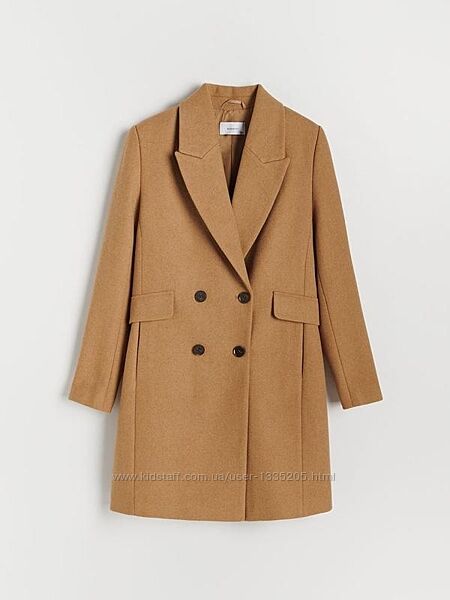 Шерстяное двубортное пальто Reserved. Размер в наличии по бирке 44. Спереди два кармана с клапанами. Двубортная застёжка на пуговицы. Размер 44: Ширина под рукавами 57,5 см ПОТ 56 см ПОБ 62 см Длина 95 см Рукав 64 см Ширина в плечах 44 см