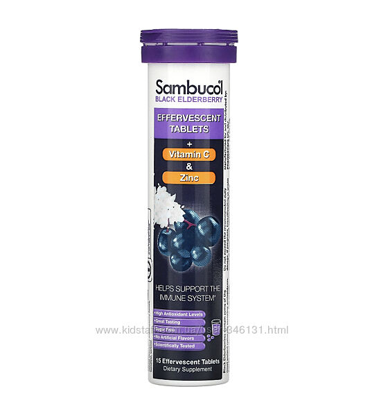 Sambucol, Черная бузина, 15 шипучих таблеток Витамин C + цинкУкрепляет иммунную систему