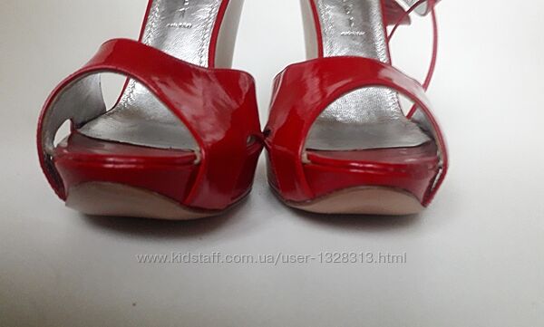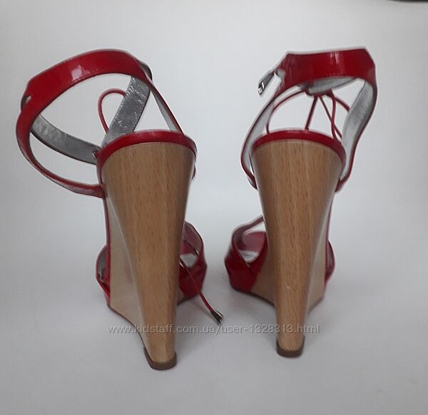 Состояние очень хорошее единственное небольшой темный развод от трения на обох босоножках, на фото показала, практически не видно. и на одном шнурке отсутствует один наконечник. высота платформы 13 см, по стельке 26.5 см. от края до края 27 см.