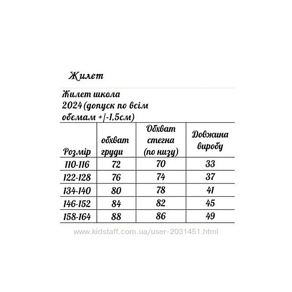 | Рост | 110 см, 116 см, 122 см, 128 см, 134 см, 140 см, 146 см, 152 см, 158 см, 164 см |