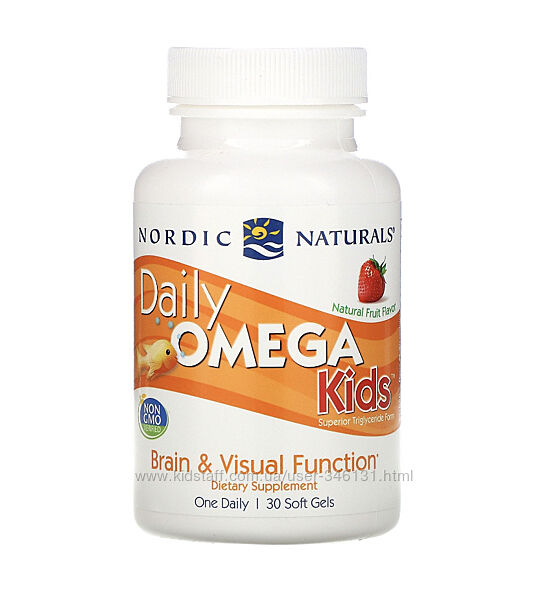 Nordic Naturals, Daily Omega Kids, омега для детей в капсулах, клубничный вкус, 500 мг, 30 мягких капсулОПИСАНИЕ: