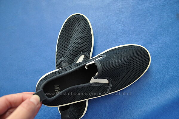 Мокасини H&M, розмір EUR 34, по устилці 21,5 см Стан гарний, резинки по бокам білі, колір підошви трохи пожовтів. Дуже мякі і зручні за рахунок бокових резинок, глибокі.