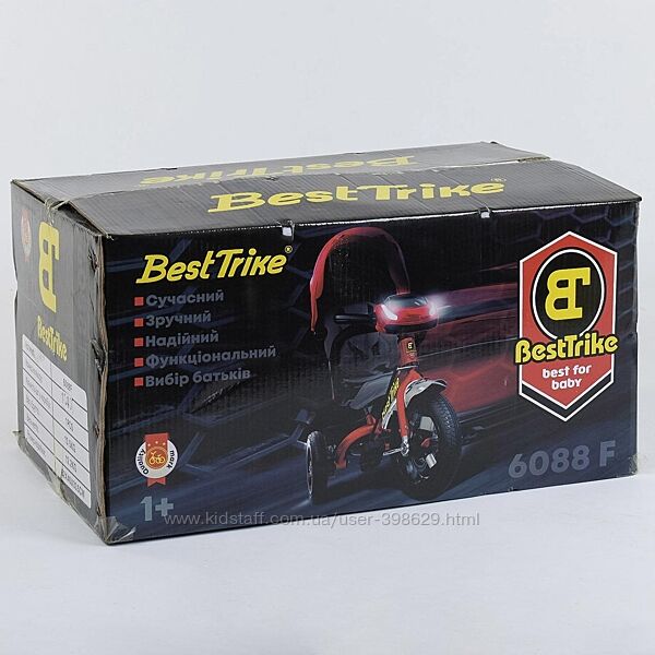 Трехколесный велосипед Best Trike 6088 F с ярким оригинальным дизайном, интересной музыкальной панелью и удобным функционалом сделают прогулки на свежем воздухе приятными как для малыша, так и для его родителей! Трехколесный детский велосипед Best Trike прекрасно подойдет для детей от 1 до 3 лет. Благодаря наличию съемных элементов, его можно легко трансформировать в обычный трехколесный велосипед для детей постарше.Особенности.