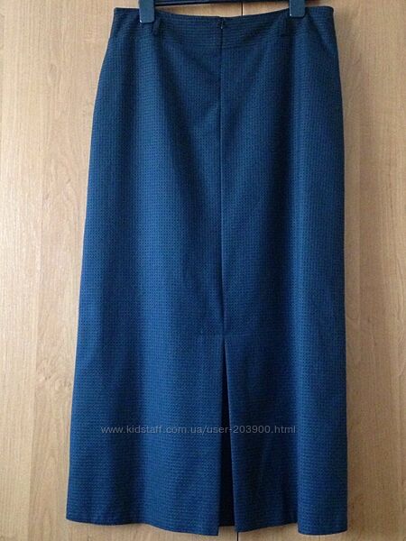 Очень приличная юбка-карандаш длинная. Цвет очень темно-синий красивый в мелкую клетку. Длина 97 см, талия 88, бедра 108, по низу 128/140 (с учетом встречной складки). На поясе шлевки для ремня (можно легкий шарфик). Отличное состояние, один короткий выход. Оплата на карту. Доставка Новой и Укрпочтой. Возврат не предусмотрен.