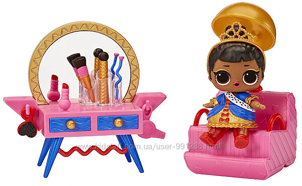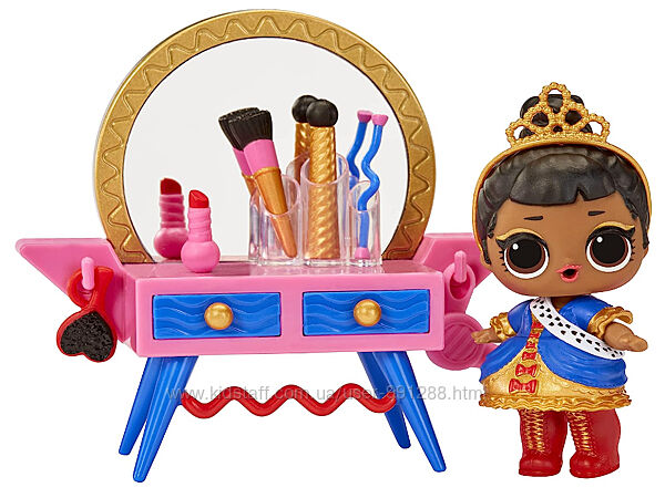 Кукольный набор LOL Surprise Маленькие комнатки Салон красоты ее Величества — кое-что новенькое для вашей коллекции. С его помощью вы сможете создавать уютные места любимым куклам и даже собрать маленький городок.Вас приглашает в гости ее Величество, в салоне красоты можно сделать новую прическу и красивый макияж! Напоите куколку водой из бутылки, чтобы увидеть сюрприз.